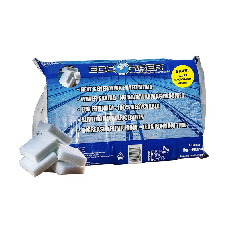 Eco-Fiber is produced from virgin Fibers, through various processes, the fiber is formed and needled to produce well engineered pads. These light weight pads are packed to meet required volumes for various sized pool filters. After the fibers life span, they can be recycled 100%.